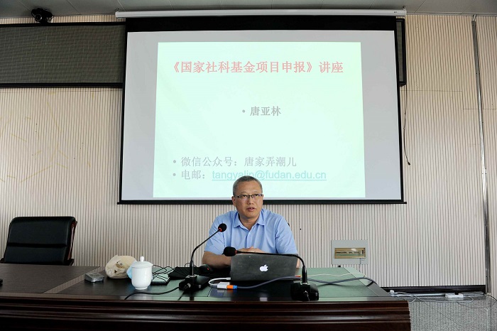 下午3:00,唐亚林为学校教师开设了题为“国家(教育部)社会科学基金申报”的专题讲座。唐亚林结合自身经历和专业技巧,围绕国家(教育部)社会科学基金项目的资助特点、申报技巧、交流指导等三个方面进行了详细讲解。