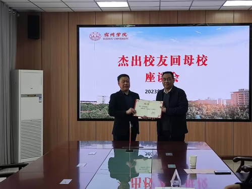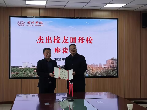 范守保回顾自己宿州学院求学历程,表达了对母校的感激之情,并为学校的发展感到骄傲和自豪。在交流中,分享了毕业之后的奋斗历程,介绍了事业发展的境况,并就加强校企对接、共享科研资源、增进学科专业建设、提高校友宣传力度、提升学生就业工作等方面给出了诸多建议和具体措施。