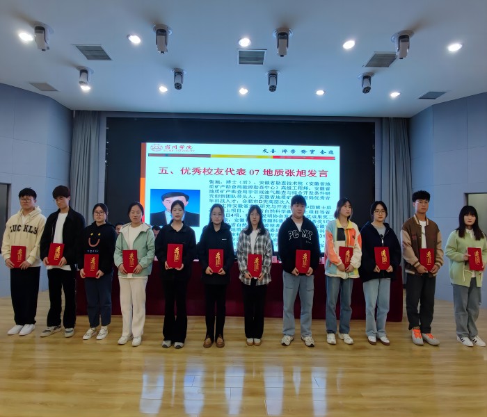 本次会议,特邀2007级地质工程校友、安徽省勘查技术院高级工程师张旭作为校友代表发言。张旭回忆了自己在学校学习的点点滴滴,号召广大校友要谨记“友善、博学、务实、奋进”的校训,踔厉奋发、锐意进取,以更好的成绩为学院争光。