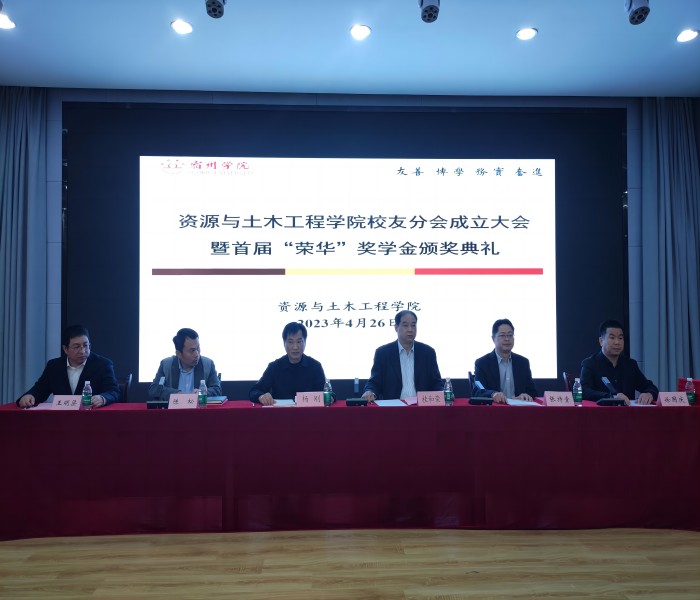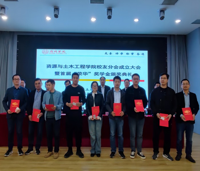 2023年4月26日下午,资源与土木工程学院校友分会成立大会暨首届“荣华”奖学金颁奖典礼在宿州学院招聘大厅隆重举行。地质工程专业学科带头人桂和荣教授,校友办公室主任、招就处处长杨刚,资土学院党委书记张持堂、院长陈松、党委副书记徐国庆、副院长王明梁出席大会。地质工程专业校友代表、首届“荣华”奖学金获得者以及2021、2022级部分同学参加大会,会议由陈松主持。