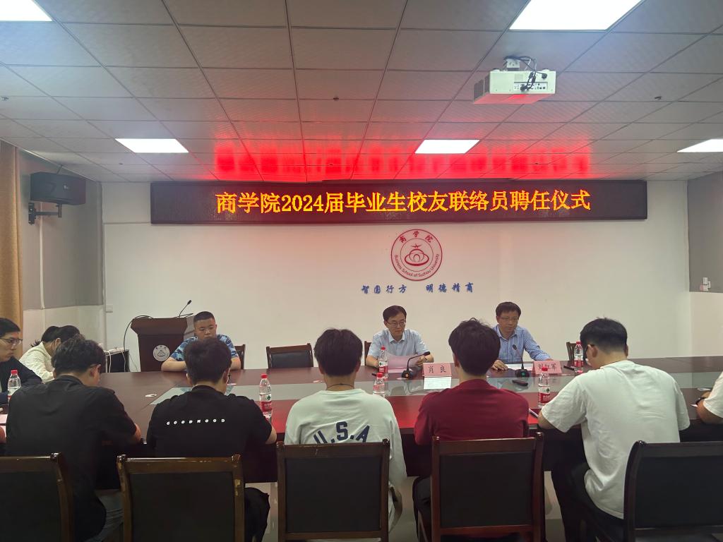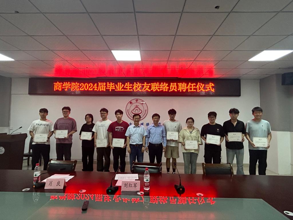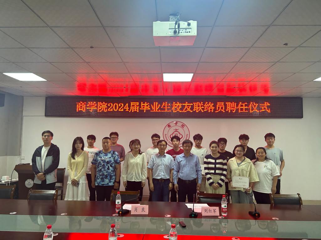 5月21日下午,商学院在实训楼B517会议室举办了2024届毕业生校友联络员聘任仪式,商学院党委书记肖良,党委副书记、院长刘红军,以及商学院2024届毕业生校友联络员参加了仪式。刘红军主持聘任仪式。