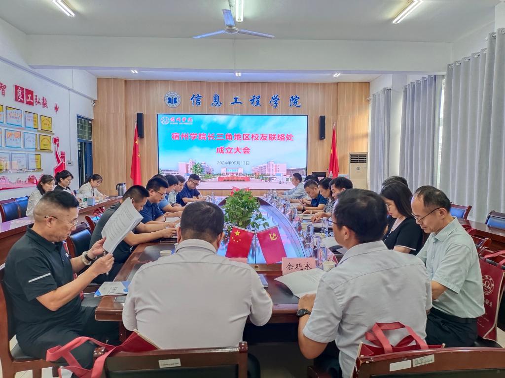 9月13日下午,宿州学院长三角地区校友联络处成立大会在宿州学院教育园区校区信息工程学院三楼会议室隆重举行。学校党委常委、副校长王红艳,相关二级学院和招生就业处(校友会办公室)、教务处、科研处等行政部门负责人,校友会办公室全体人员及来自长三角地区的部分校友欢聚一堂,共同见证长三角地区校友联络处的成立。