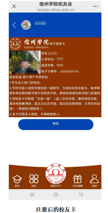3.电子校友卡办理最终解释权归宿州学院校友办所有。